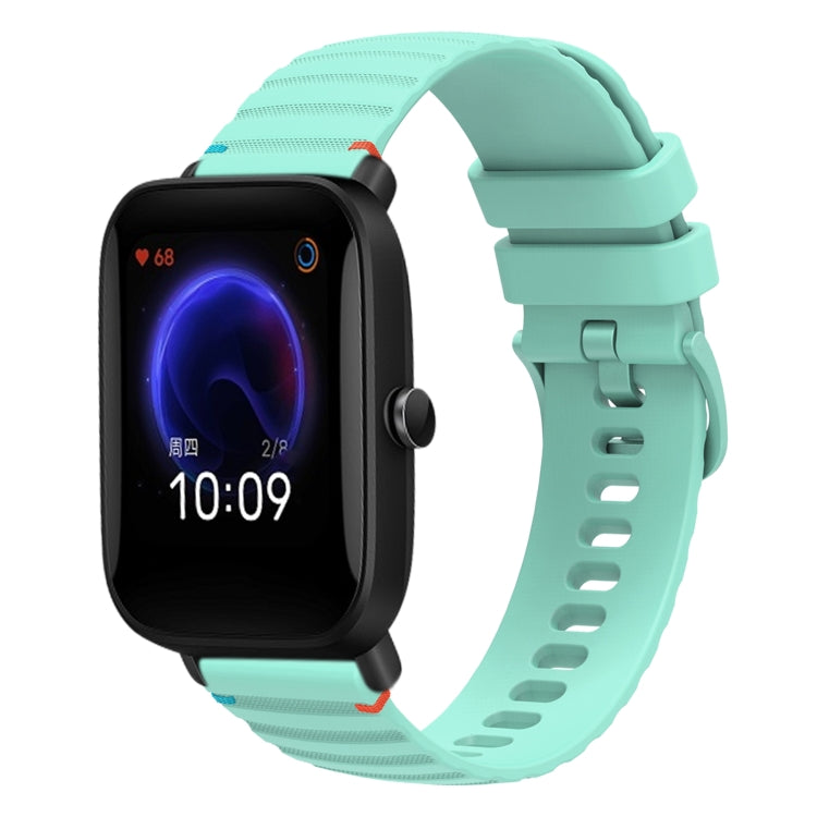 Correa de Silicona Amazfit Pop 20mm Puntadas Onduladas Puntos (Verde Azulado)