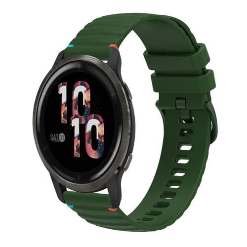 Correa de Silicona para Reloj Garmin Venu 2 22mm con Puntadas Onduladas y Puntos (Verde Militar)