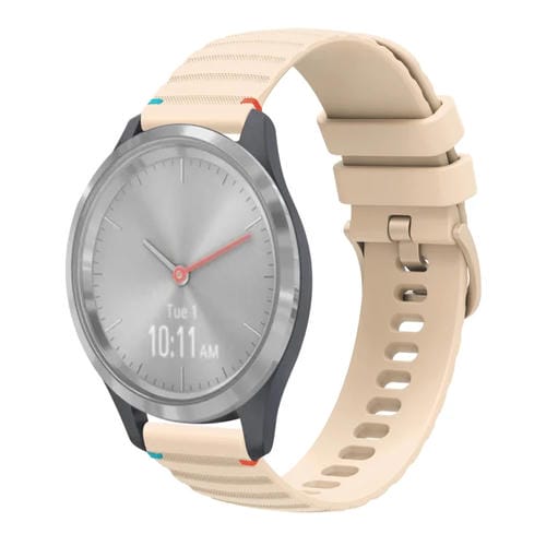 Correa de Silicona Garmin Vivomove 3S 18mm con Puntadas Onduladas y Puntos (Crema)