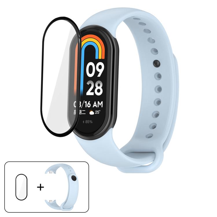 Correa de silicona de color sólido con película curva 3D para Xiaomi Smart Band 9/9 NFC (azul claro)