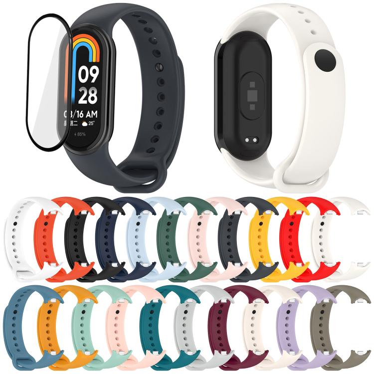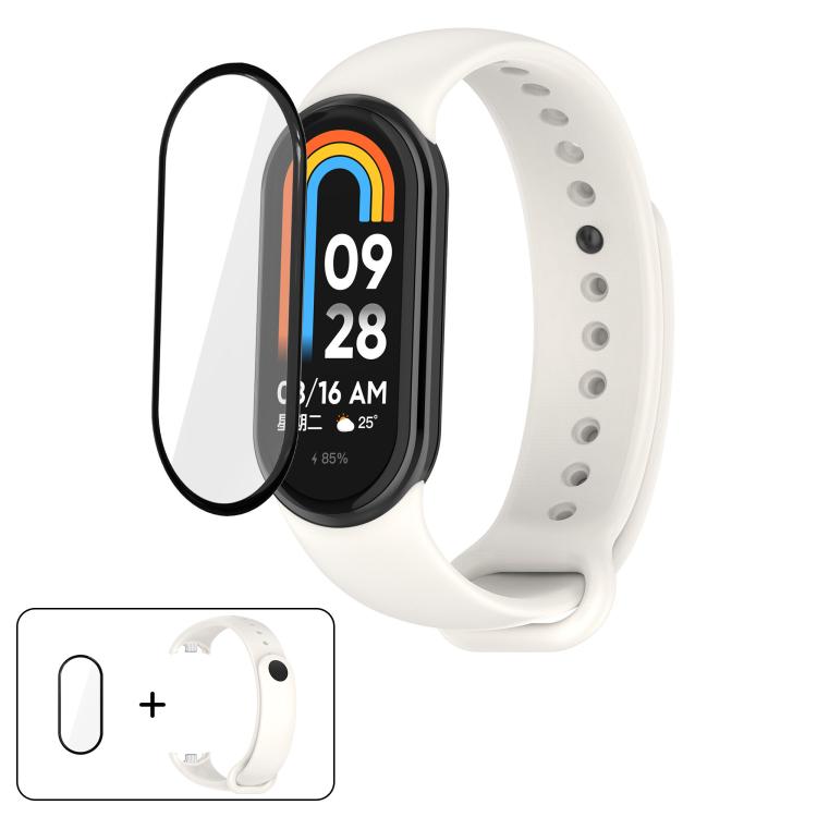 Correa de silicona de color sólido con película curva 3D para Xiaomi Smart Band 9/9 NFC (blanco suave)