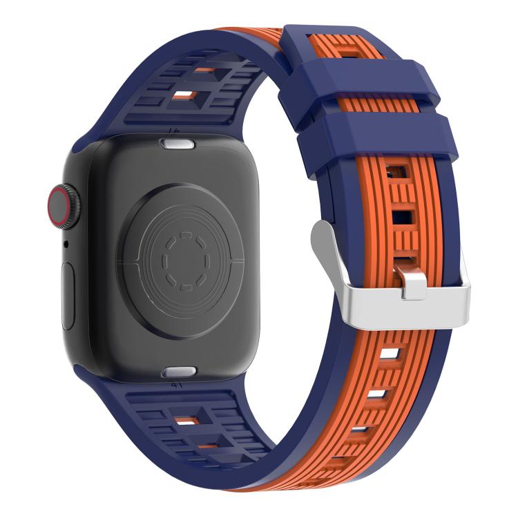 Correa de silicona de rayas verticales bicolor para Apple Watch de 42 mm, 41 mm, 40 mm y 38 mm (azul marino y naranja)
