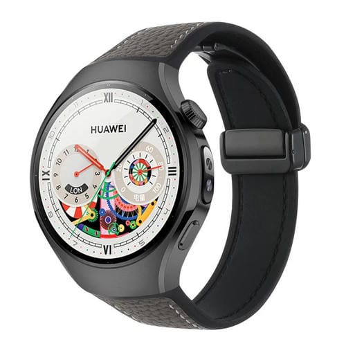 Correa de silicona híbrida con hebilla magnética para Huawei Watch 5 de 46 mm (piel granulada gris y negra)