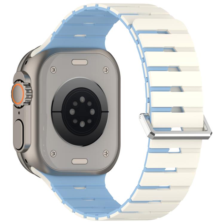 Correa de silicona magnética bicolor estilo melódica para Apple Watch de 42 mm / 41 mm / 40 mm / 38 mm (blanco antiguo, azul niebla).