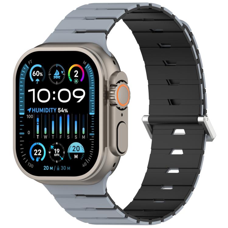 Correa de silicona magnética bicolor estilo melódica para Apple Watch de 46 mm / 49 mm / 45 mm / 44 mm (Gris obsidiana, negro).