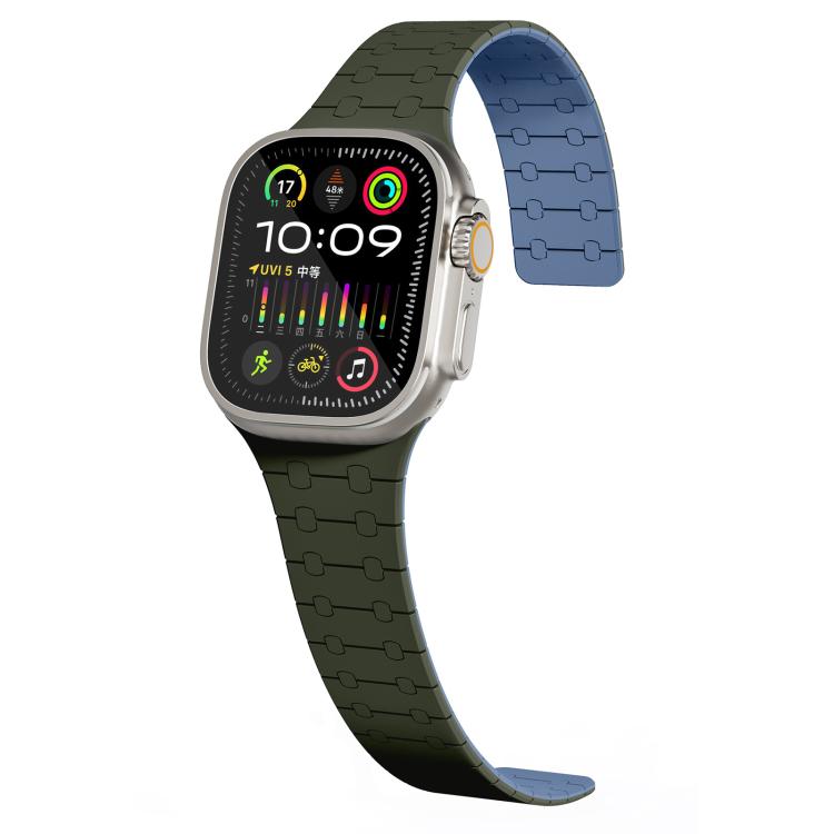 Correa de silicona magnética con colores contrastantes para Apple Watch de 42, 44, 45, 46 y 49 mm (verde y azul)