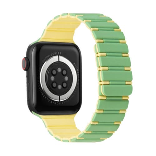 Correa de Silicona Magnética Dos Colores para Apple Watch Se 2023 40mm (Amarillo Claro Menta)