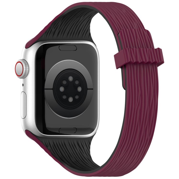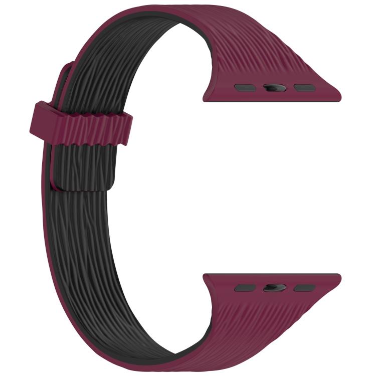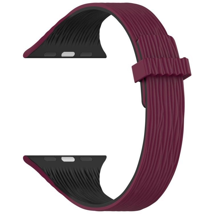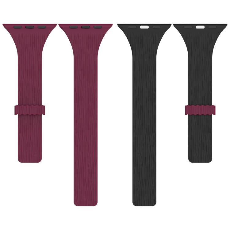 Correa de silicona magnética para Apple Watch de 42 mm, 41 mm, 40 mm y 38 mm con diseño de madera y vetas de agua (color vino tinto y negro).