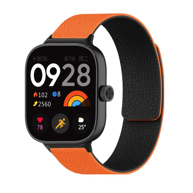 Correa de silicona magnética suave con textura Lychee para Redmi Watch 6 (naranja y negro)