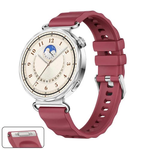 Correa de silicona para Huawei Watch GT 6 de 41 mm con botón de presión y liberación rápida, color rojo vino, hebilla plateada