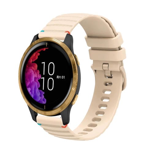 Correa de Silicona Garmin Venu 20mm con Puntadas Onduladas y Puntos (Crema)