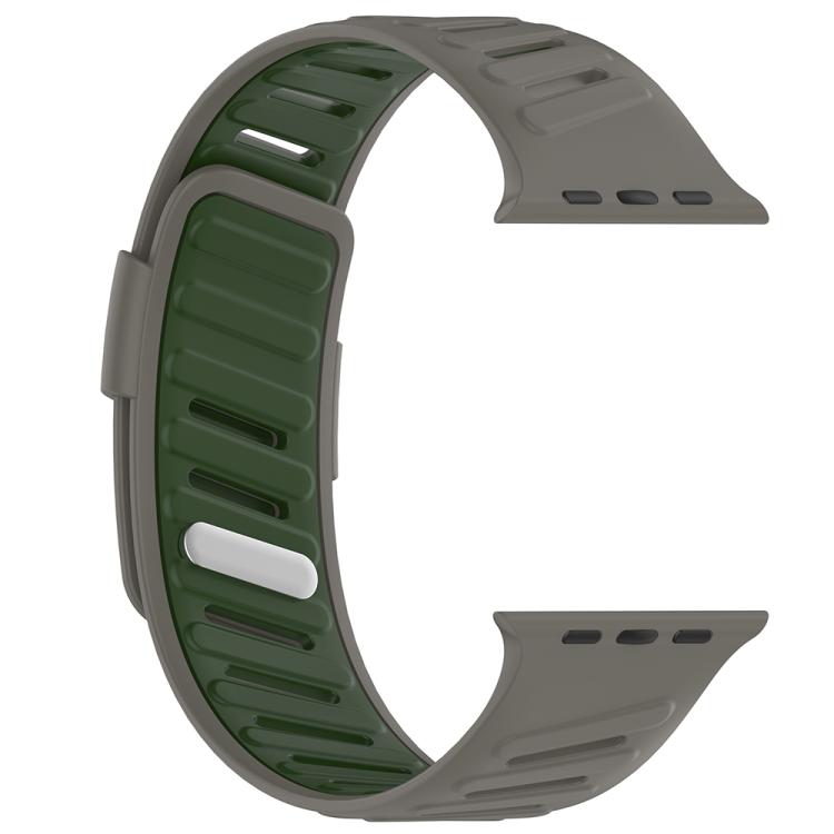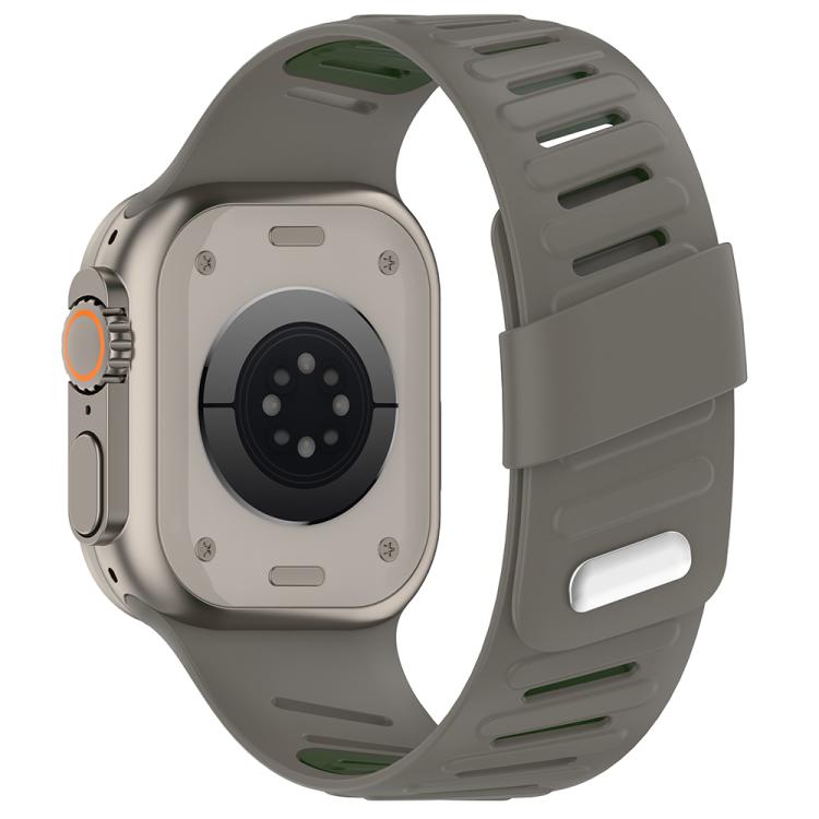 Correa de silicona transpirable bicolor con hebilla oblicua para Apple Watch de 46 mm, 49 mm, 45 mm y 44 mm (verde oliva, gris, caqui)