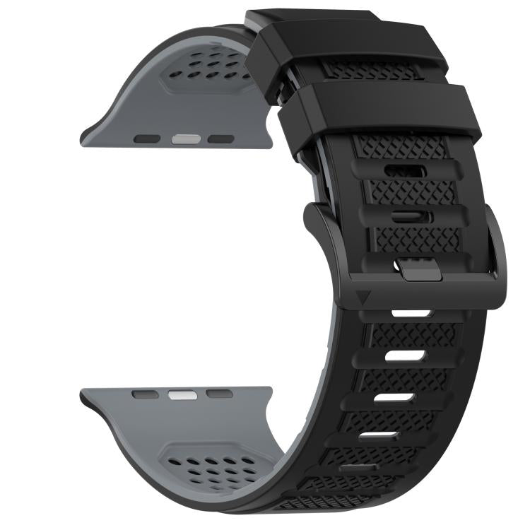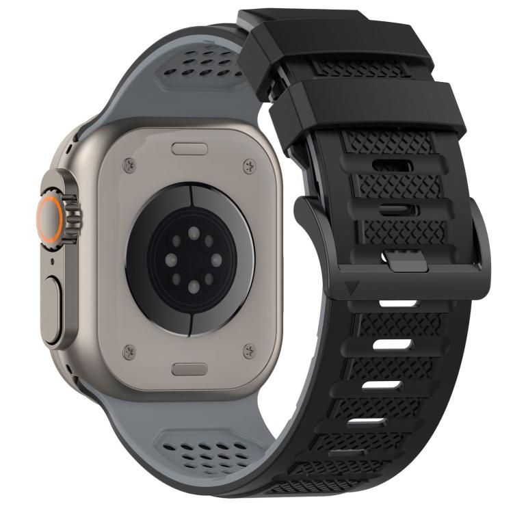 Correa de silicona transpirable con diseño de cuadros para Apple Watch de 46 mm, 49 mm, 45 mm y 44 mm (negro y gris)