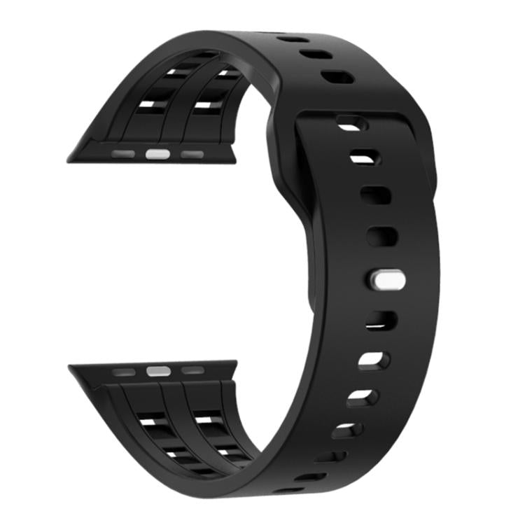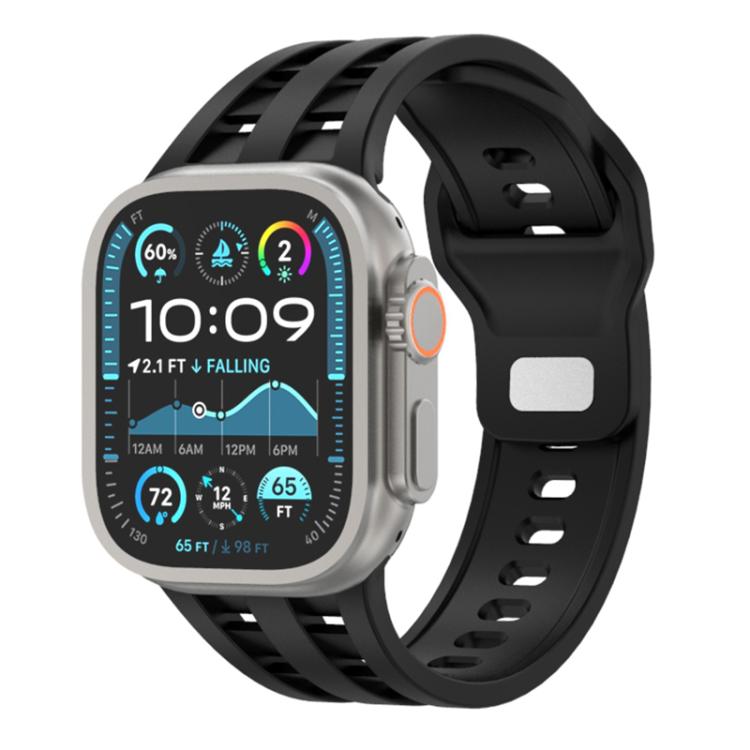 Correa de silicona transpirable de doble fila para Apple Watch de 46 mm, 49 mm, 45 mm y 44 mm (negra)