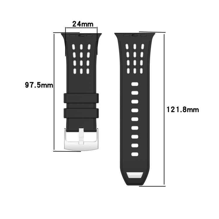 Correa de silicona transpirable de dos colores con agujeros verticales para Apple Watch de 46 mm, 49 mm, 45 mm y 44 mm (agujas de pino verde)