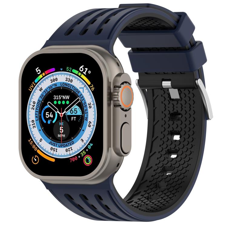 Correa de silicona transpirable de dos colores con agujeros verticales para Apple Watch de 46 mm, 49 mm, 45 mm y 44 mm (azul medianoche y negro)