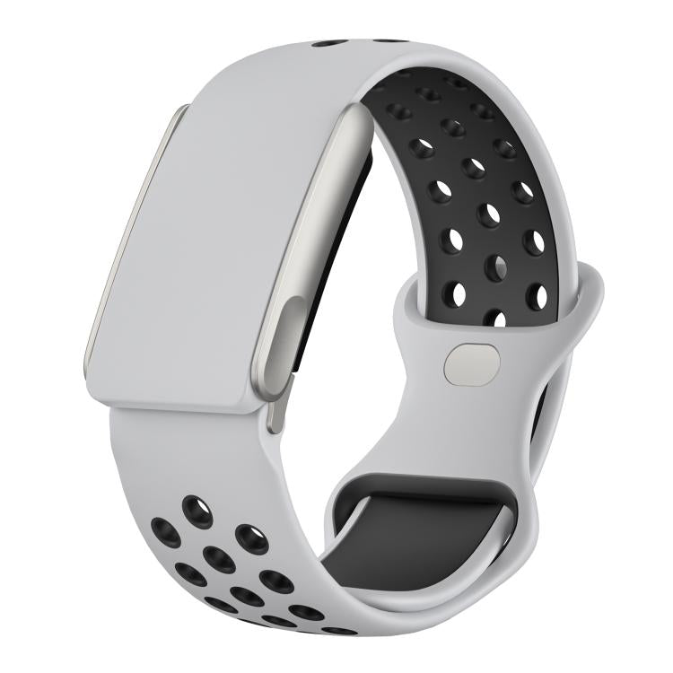 Correa de silicona transpirable para reloj deportivo WHOOP 5.0 con hebilla inversa y electrocardiograma (gris claro y negro)