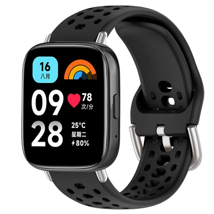 Correa deportiva de silicona con hebilla plateada para Redmi Watch 3 Active/Watch 3 Lite xDfind (negra)