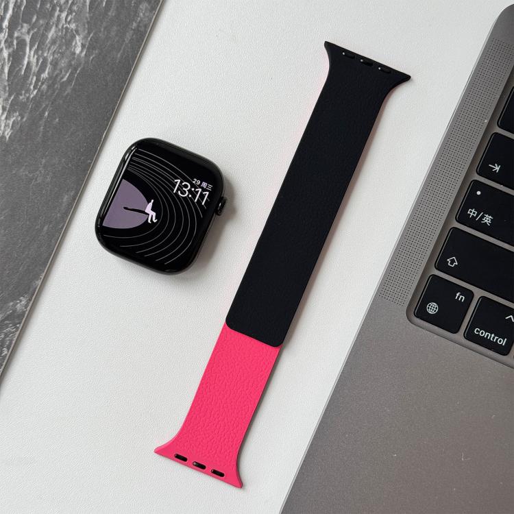 Correa magnética de silicona bicolor con textura de lichi para Apple Watch de 42 mm / 41 mm / 40 mm / 38 mm (Peonía negra)