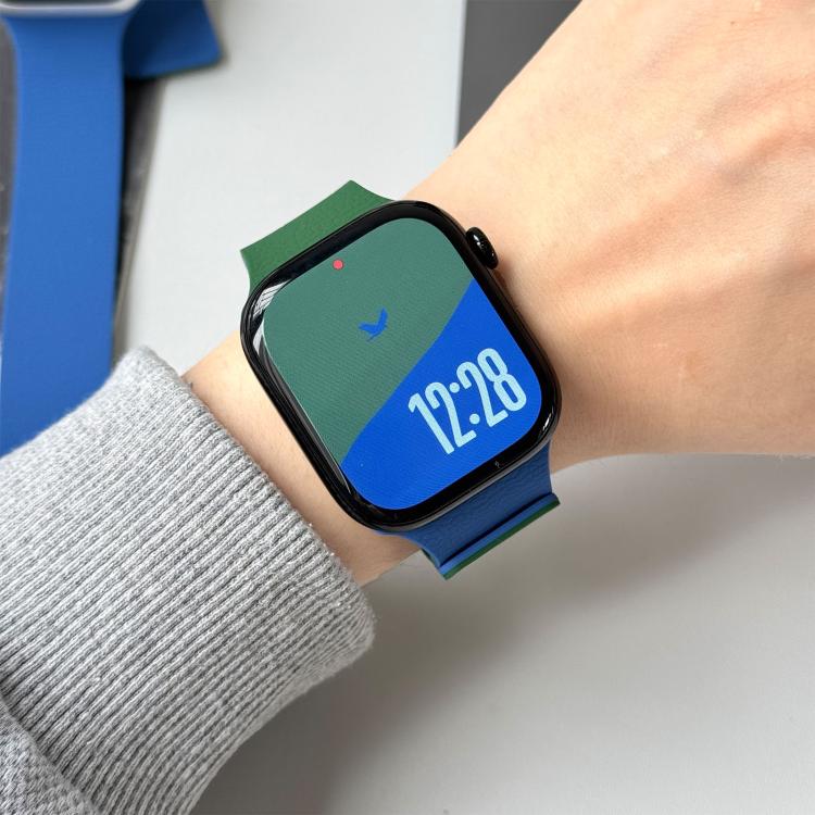 Correa magnética de silicona bicolor con textura de lichi para Apple Watch de 46 mm / 49 mm / 45 mm / 44 mm (azul verdoso).