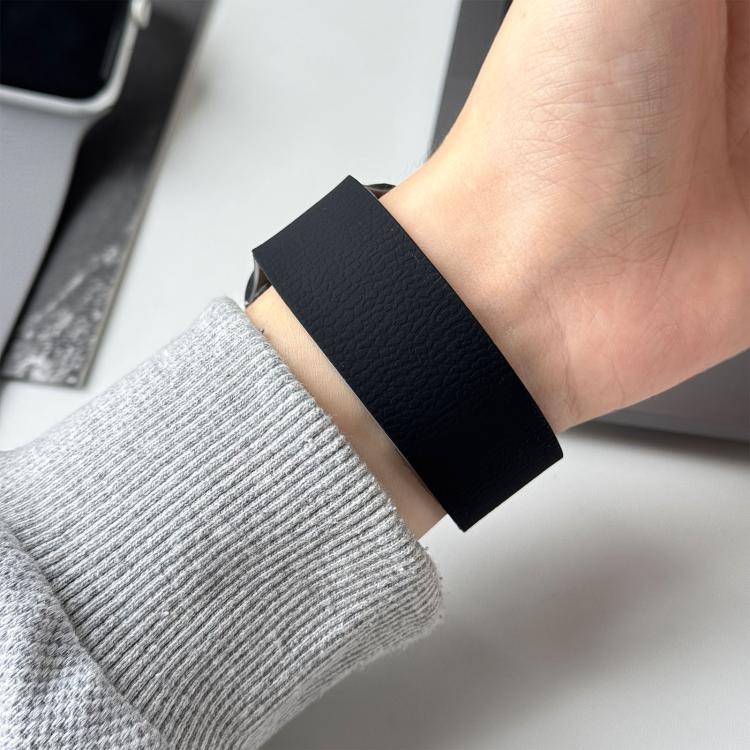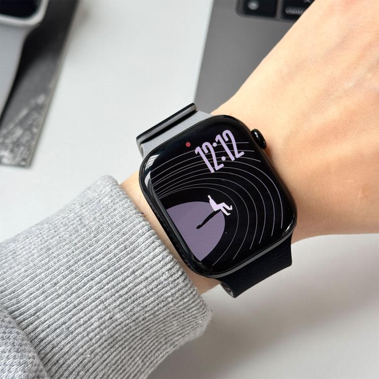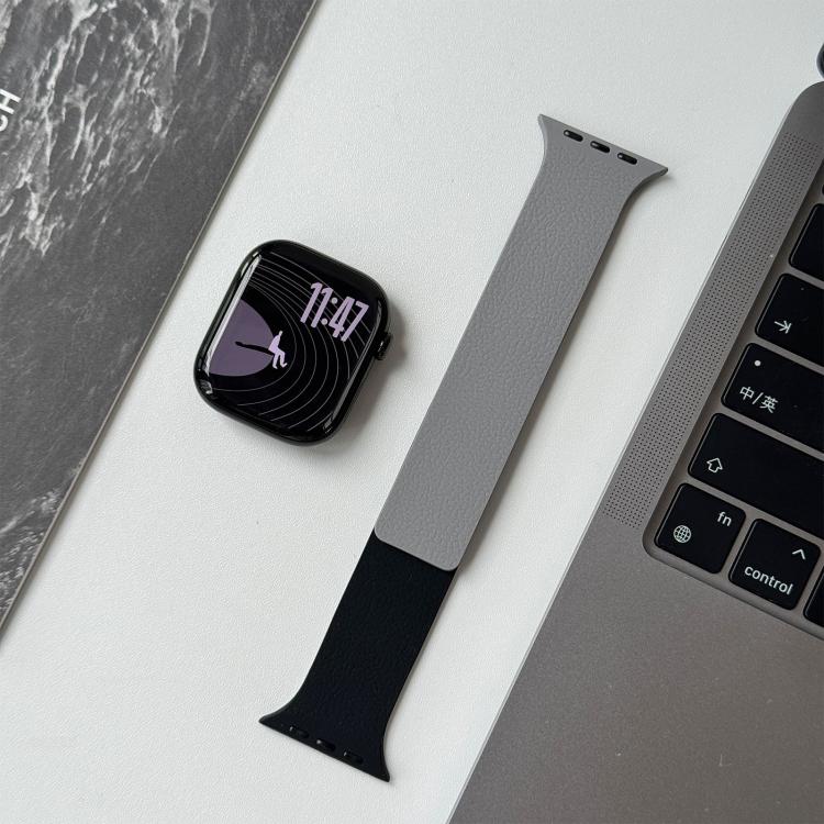 Correa magnética de silicona bicolor con textura de lichi para Apple Watch de 46 mm / 49 mm / 45 mm / 44 mm (negro/gris).