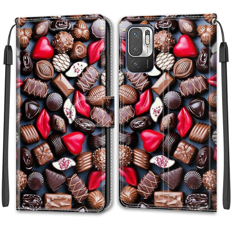 Dibujo de Color Voltaje Cierre Magnético Cierre de Cuero Horizontal Flip Pu Funda con Soporte y Ranuras para Tarjeta para Xiaomi Redmi Note 10 5G (C06 Red Lip Chocolate)