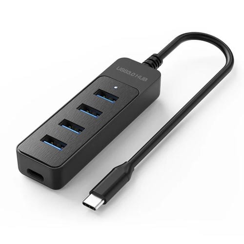 - 4 Puertos USB 3.0 con velocidad de transmisión de hasta 350 MB/s, Soporte para disco duro de hasta 12 TB, núcleo de cobre estañado para antiinterferencias y transmisión estable, Alimentación mediante Cable USB Tipo C externo