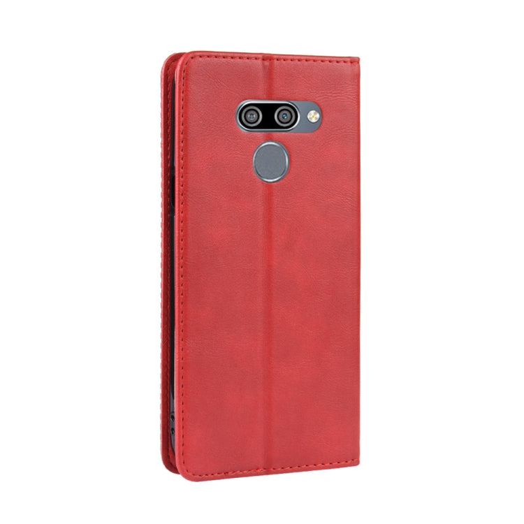 Estuche de Cuero con Tapa Horizontal Textura Caballo Loco Retro Hebilla Magnética para LG K50 / LG Q60 (Rojo)