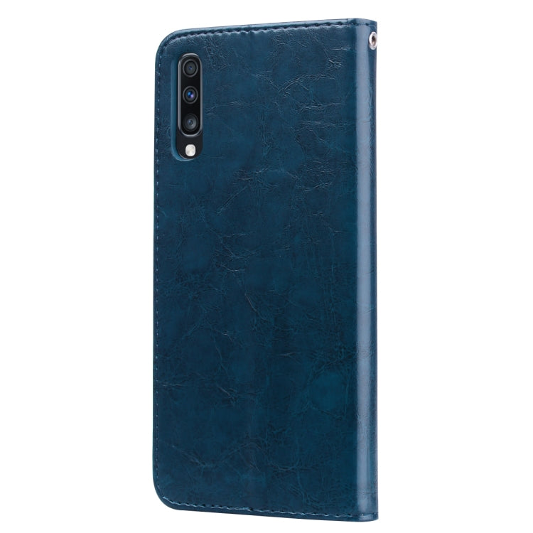 Estuche de Cuero Galaxy A70 Tapa Horizontal Textura Cera Aceite Soporte Tarjetas Billetera (Azul)