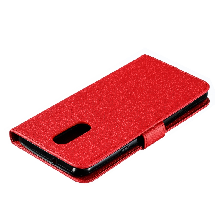 Estuche de Cuero con Tapa Horizontal para LG Stylo 4 con Billetera y Soporte (Rojo)