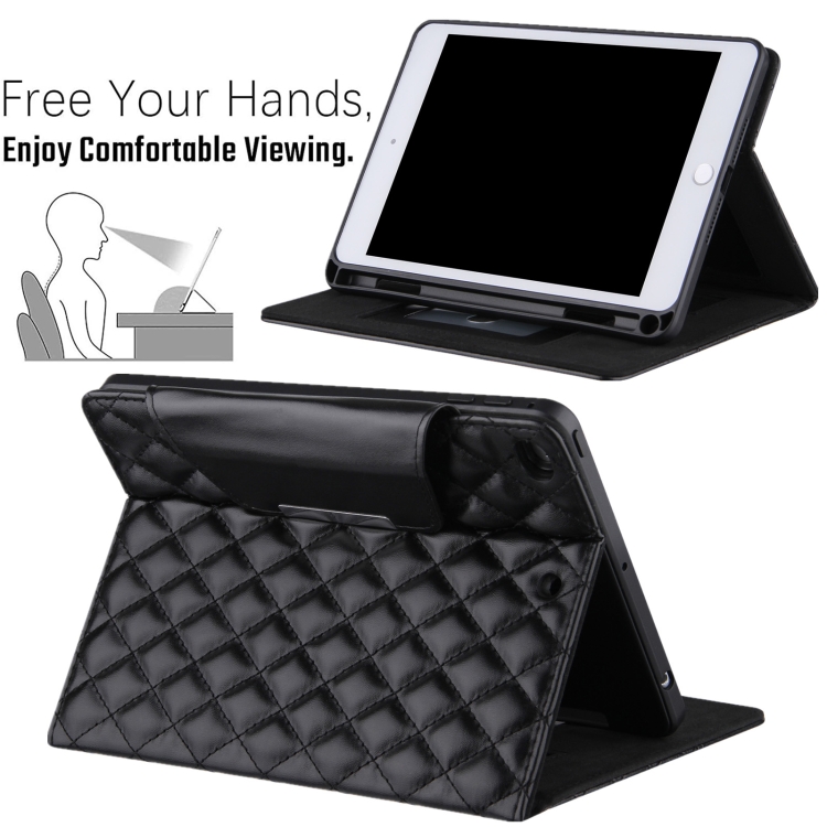 Estuche para iPad Mini 5/4 Cuero Horizontal Patrones a Cuadros Ranuras Soporte Tarjeta Correa (Negro)
