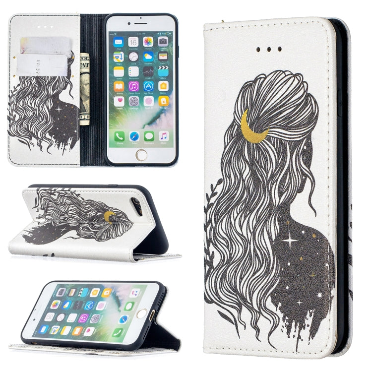 Estuche de Cuero PU para iPhone 8 y 7 con Tapa Horizontal Magnética, Soporte, Ranuras y Billetera (Niña)