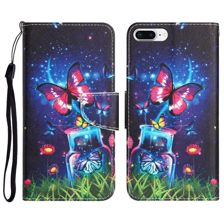 Estuche de Teléfono Cuero para iPhone 7 Plus 8 Plus con Dibujo Mariposa de Botella