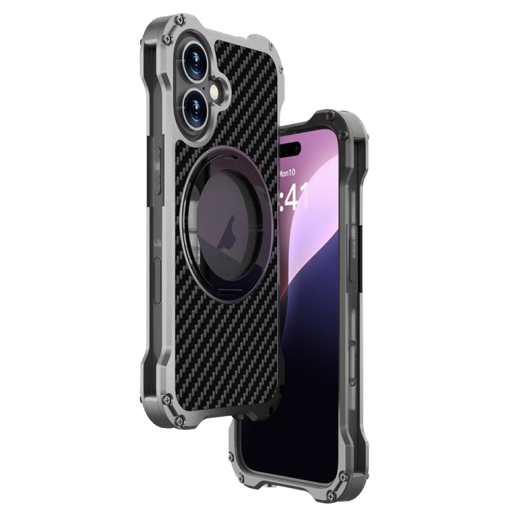 Estuche Magnético de Metal R-Just RJ51-1 con Soporte Giratorio Hueco para iPhone 16 (Gris Plateado)