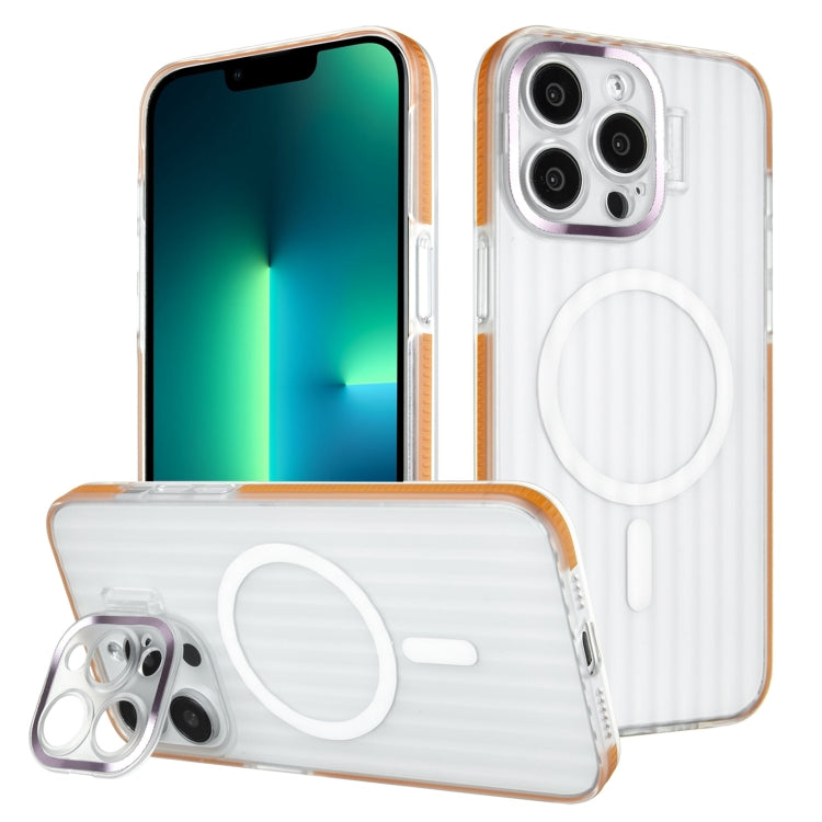 Estuche Magnético para Teléfono Magsafe con Soporte para Lente de Borde de Color para iPhone 13 Pro Max (Naranja)