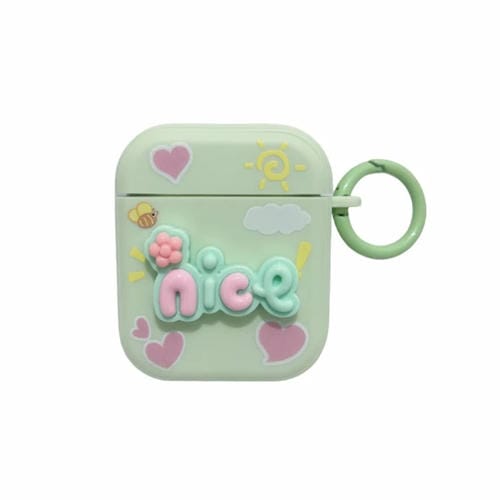 Estuche para PC Piel Texto 3D Airpods 2/1 (Verde)