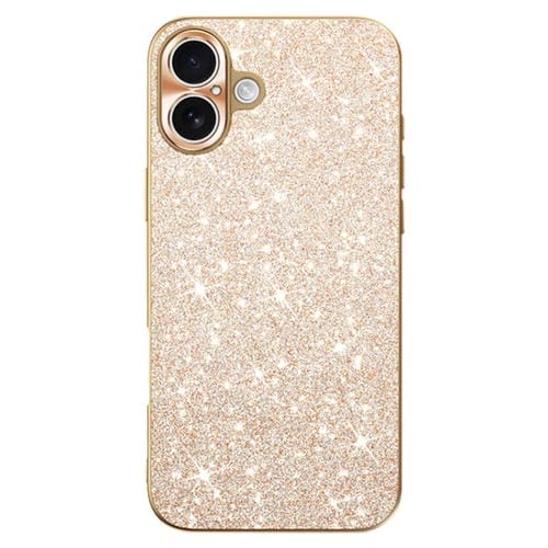 Estuche para teléfono iPhone 16 Plus con anillo de Lente textura CD y diamante en forma de estrella (Dorado)