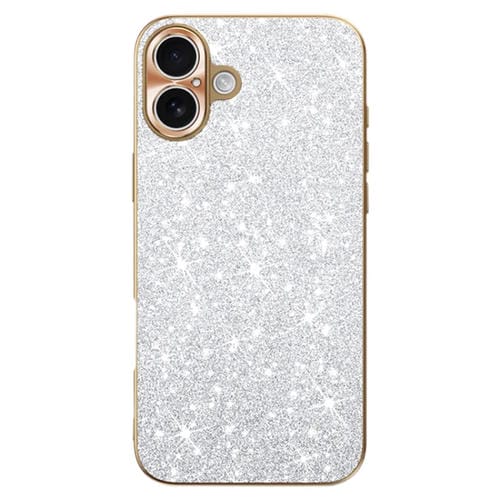 Estuche para Teléfono iPhone 16 Plus con Anillo de Lente Textura Cd Diamante Estrella (Plateado)