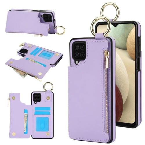 Estuche para Teléfono Samsung Galaxy A12 Rfld con Cremallera y Anillo de Doble Hebilla Antirrobo (Morado)
