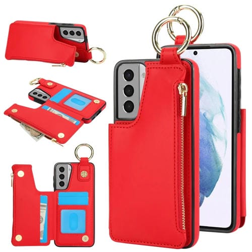 Estuche para Teléfono Samsung Galaxy S21 5G Rfld con Cremallera y Anillo Doble Hebilla Antirrobo (Rojo)