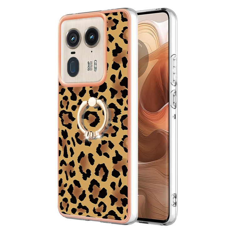 Estuche para Motorola Edge 50 Ultra con Galvanoplastia Imd Doble Cara y Soporte para Anillo (Leopardo)