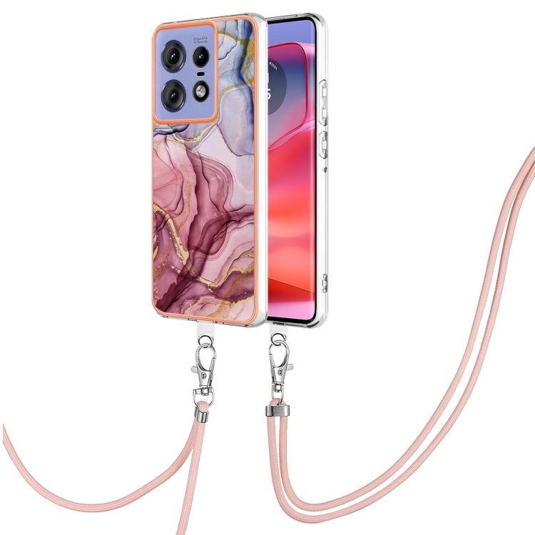 Estuche para Teléfono Motorola Edge 50 Pro con Imd Doble Cara y Galvanoplastia de Mármol con Cordón (Rojo Rosa)