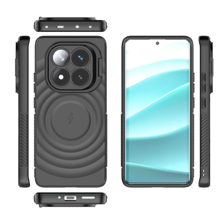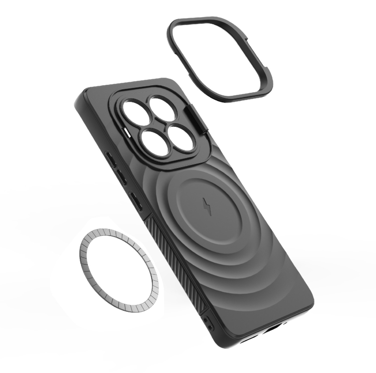 Estuche para Teléfono con Marco de Lente Corrugado Magsafe para Redmi Note 14 Pro 5G (Negro)