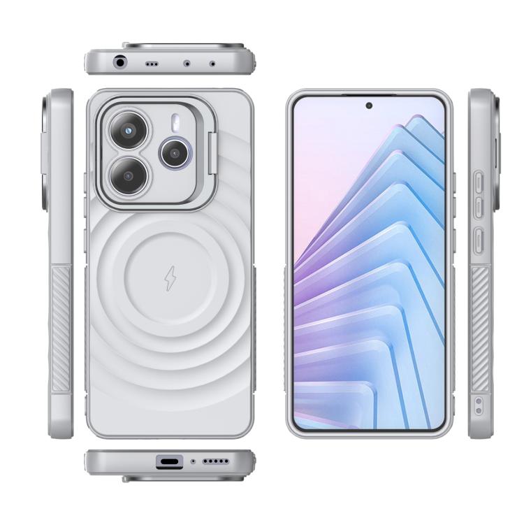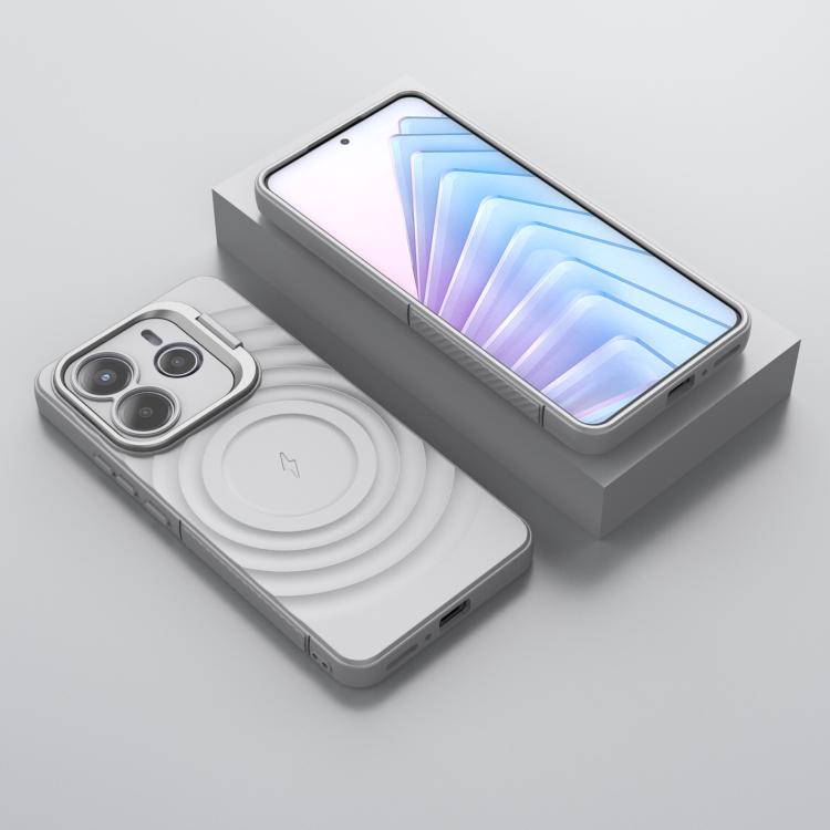 Estuche para Teléfono con Soporte de Marco de Lente Corrugado Magsafe para Redmi Note 14 5G (Gris)