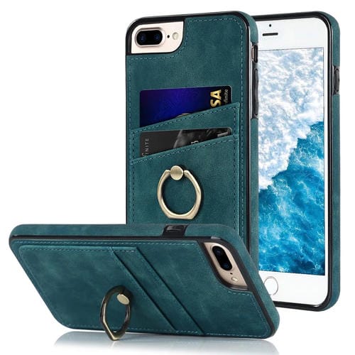 Estuche para Teléfono Cuero con Parche Vintage y Soporte para Anillo iPhone 7 Plus / 8 Plus (Azul)