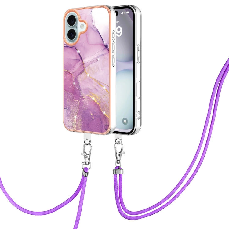 Estuche para Teléfono Imd Doble Cara Mármol Galvanizado iPhone 16 con Cordón (Púrpura)