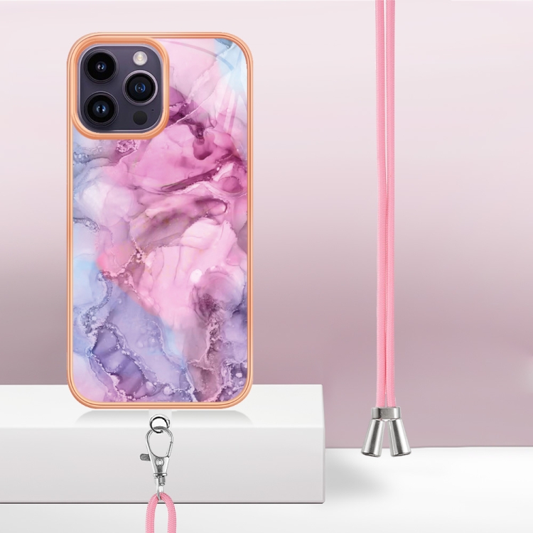 Estuche para Teléfono Imd Doble Cara Mármol Galvanizado iPhone 16 Pro con Cordón (Rosa)
