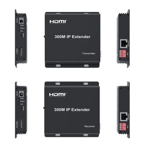 - 1x Extensor HDMI IP 300 M para Transmisión de Video HD con Transmisor y Receptor con Enchufe Europeo (Negro)