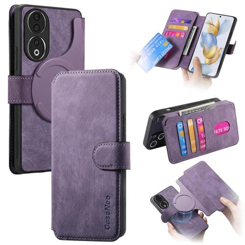 Funda de Cuero For Honor 90 Caseneo Magsafe Rfid Antirrobo para Teléfono (Púrpura)