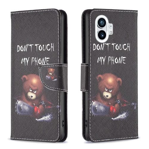 Estuche para Nothing Phone 1 de Cuero con Patrón de Dibujo Coloreado (Oso)